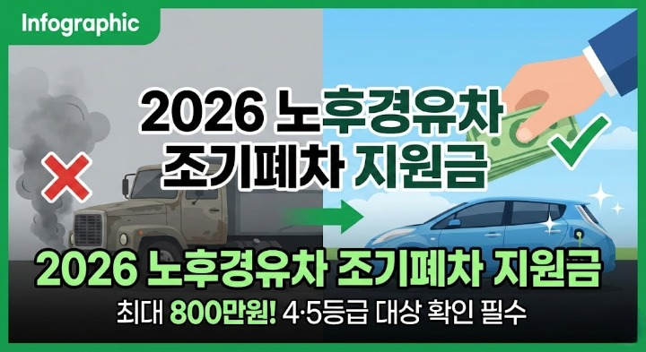 #2026조기폐차 #노후경유차지원금 #4등급조기폐차 #5등급조기폐차 #조기폐차조건 #자동차보조금 #환경부 #배출가스등급 #중고차지원금 #폐차보조금