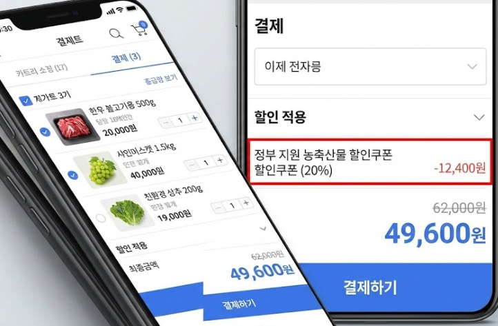 결론부터 말씀드리면 가능합니다. 하지만 방식이 조금 다릅니다. 정부에서 지원하는 농축산물 할인 지원(농할)은 기본적으로 20~30%의 할인율을 제공합니다. 여기에 쿠팡이나 마켓컬리 같은 플랫폼이 자체적으로 추가 할인을 붙이거나 특가 상품을 구성하여 소비자들은 최종적으로 __최대 50% 수준의 할인__을 체감하게 됩니다.