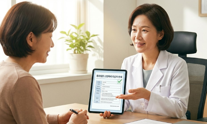- 전문의 확진: 해당 질환을 진료하는 의사에게 산정특례 대상임을 확인받습니다.