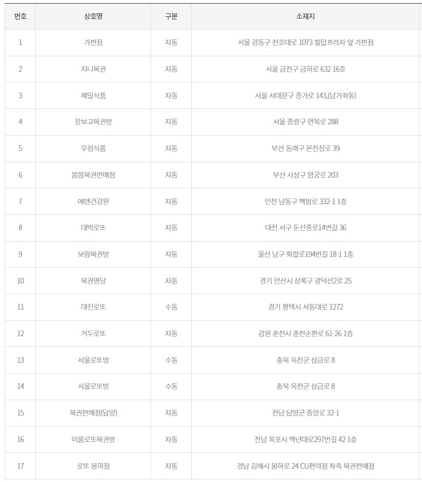 로또 1등 당첨지역