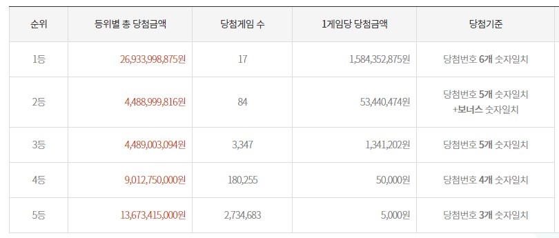 등위별 총 당첨금액