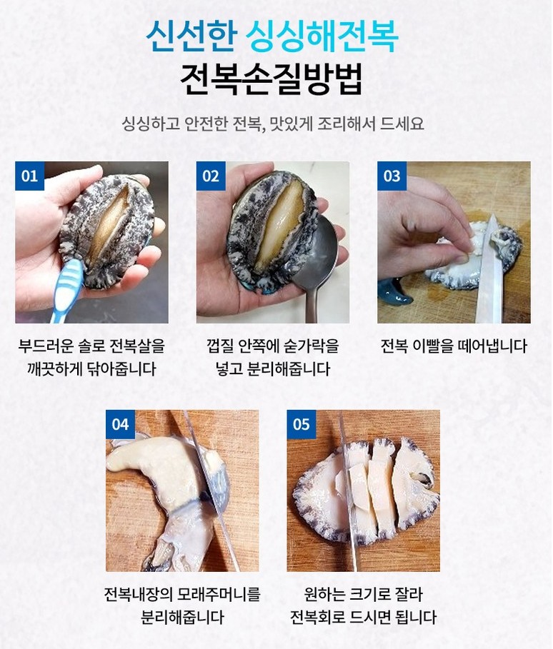 - 부드러운 솔로 전복살을 깨끗하게 닦아줍니다.