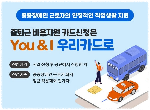 한국장애인고용공단 장애인서비스신청포털에서는 저소득 중증장애인 근로자에게 출퇴근 교통비 지원 사업을 시행하고 있는데요, 저소득 중증장애인 근로자 교통비 지원사업은 저소득 중증장애인 근로자에게 출퇴근 시 소요되는 교통비를 지원하여 근로의욕을 고취하고 안정적인 직업생활을 유지할 수 있도록 돕는 제도입니다.