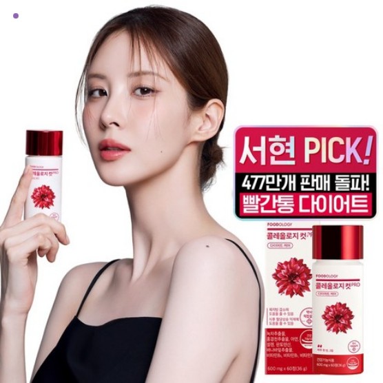 서현 빨간통 다이어트 푸드올로지 콜로올로지 컷은 체지방 감소에 도움을 줄 수 있는 녹차추출물, 콜레스테롤 개선에 도움을 줄 수 있는 홍국, 그리고 기초 대사량 증진에 도움을 줄 수 있는 자티젠을 주원료로 하는 다이어트 보조제입니다. 콜로올로지 컷은 7중 기능성 원료를 함유하여 체지방을 줄여주고 식후혈당은 잡아주는 제품입니다,