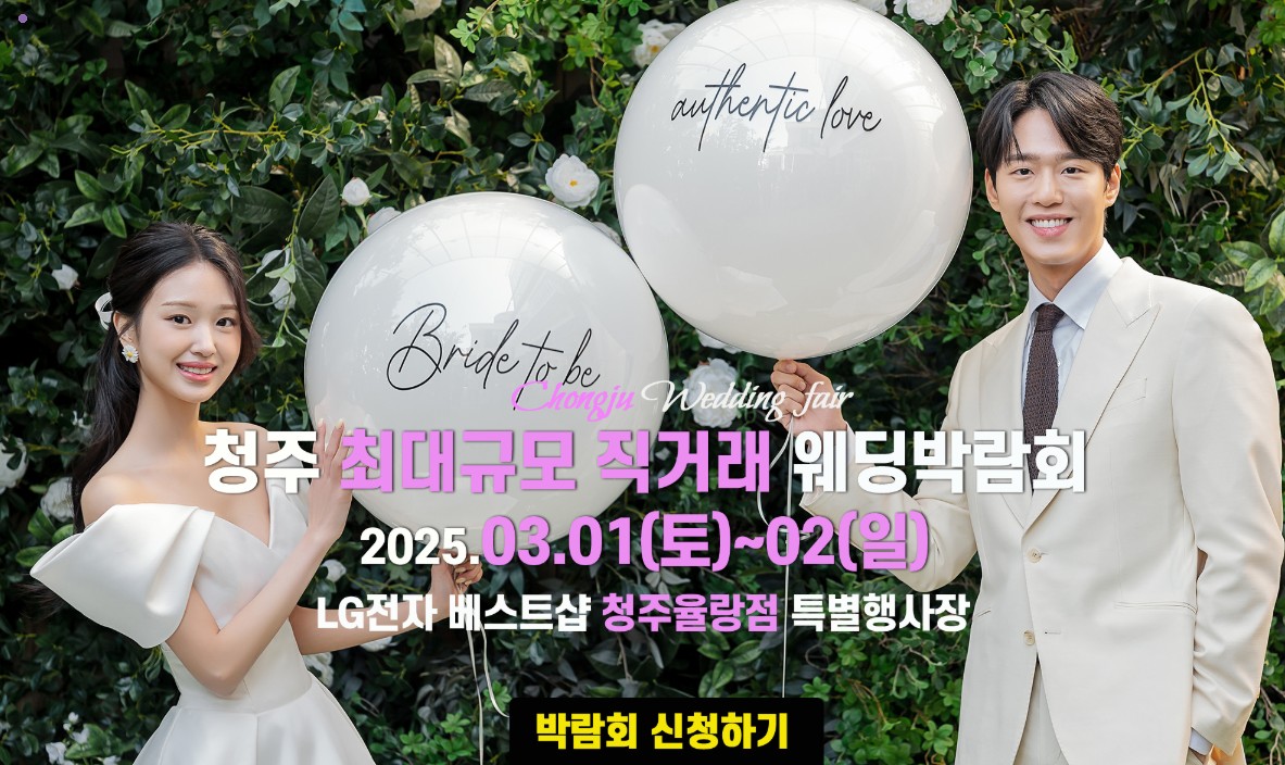 - 청주 웨딩박람회 일정: 2025년 3월 1일(토)~3월 2일(일)