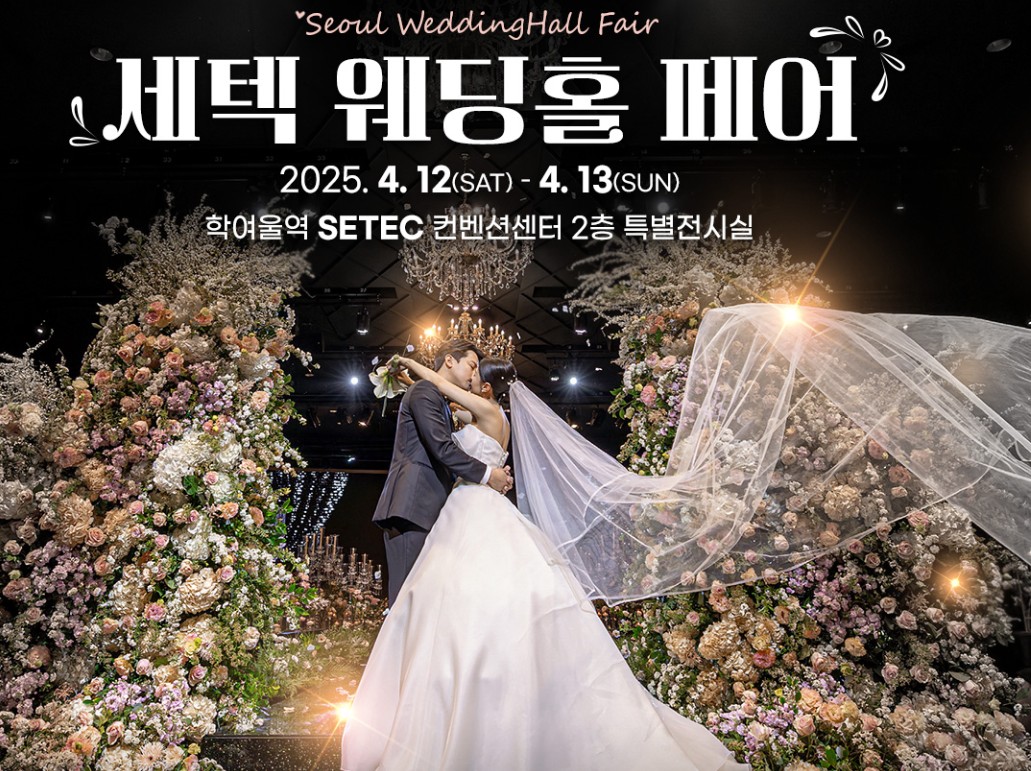 따스한 봄, 2025년 4월! 서울 SETEC에서 여러분의 꿈꾸던 웨딩을 현실로 만들어 줄 특별한 웨딩홀 페어가 열립니다. 💖 SETEC 웨딩홀 페어에서는 서울/경기 인기 웨딩홀 총집합하여 호텔, 컨벤션, 하우스 웨딩, 채플 웨딩홀 등 다양한 스타일의 웨딩홀을 한자리에서 직접 비교하고 상담받을 수 있으며 박람회 기간동안 역대급 할인 혜택과 이벤트가 진행됩니다.