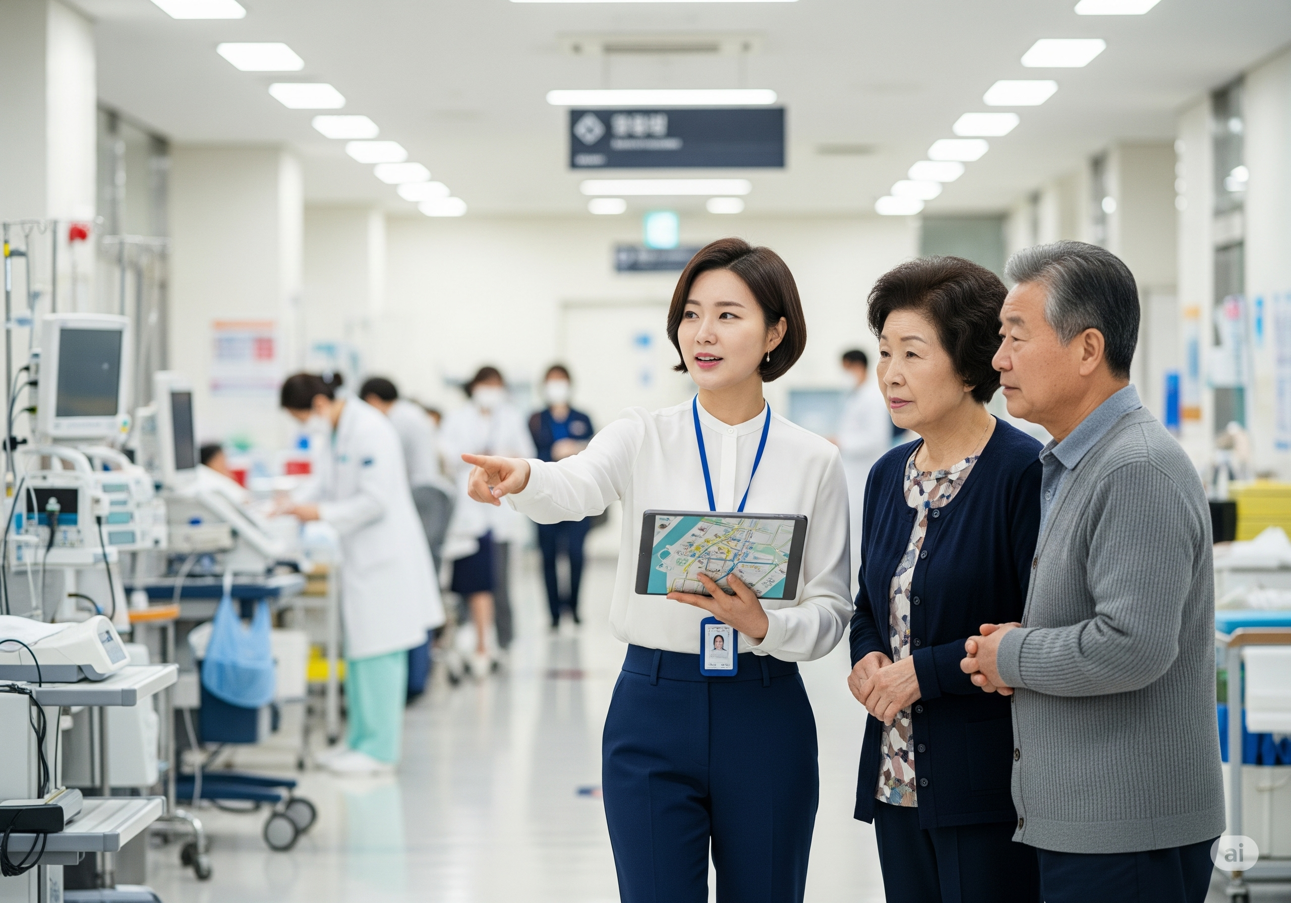 - 병원 내 행정 및 진료 지원: 접수, 수납, 서류 제출 등 병원 내 행정 절차를 돕고, 진료실 동행하여 의사소통을 돕고, 검사실이나 약국으로 이동하는 것을 지원합니다.