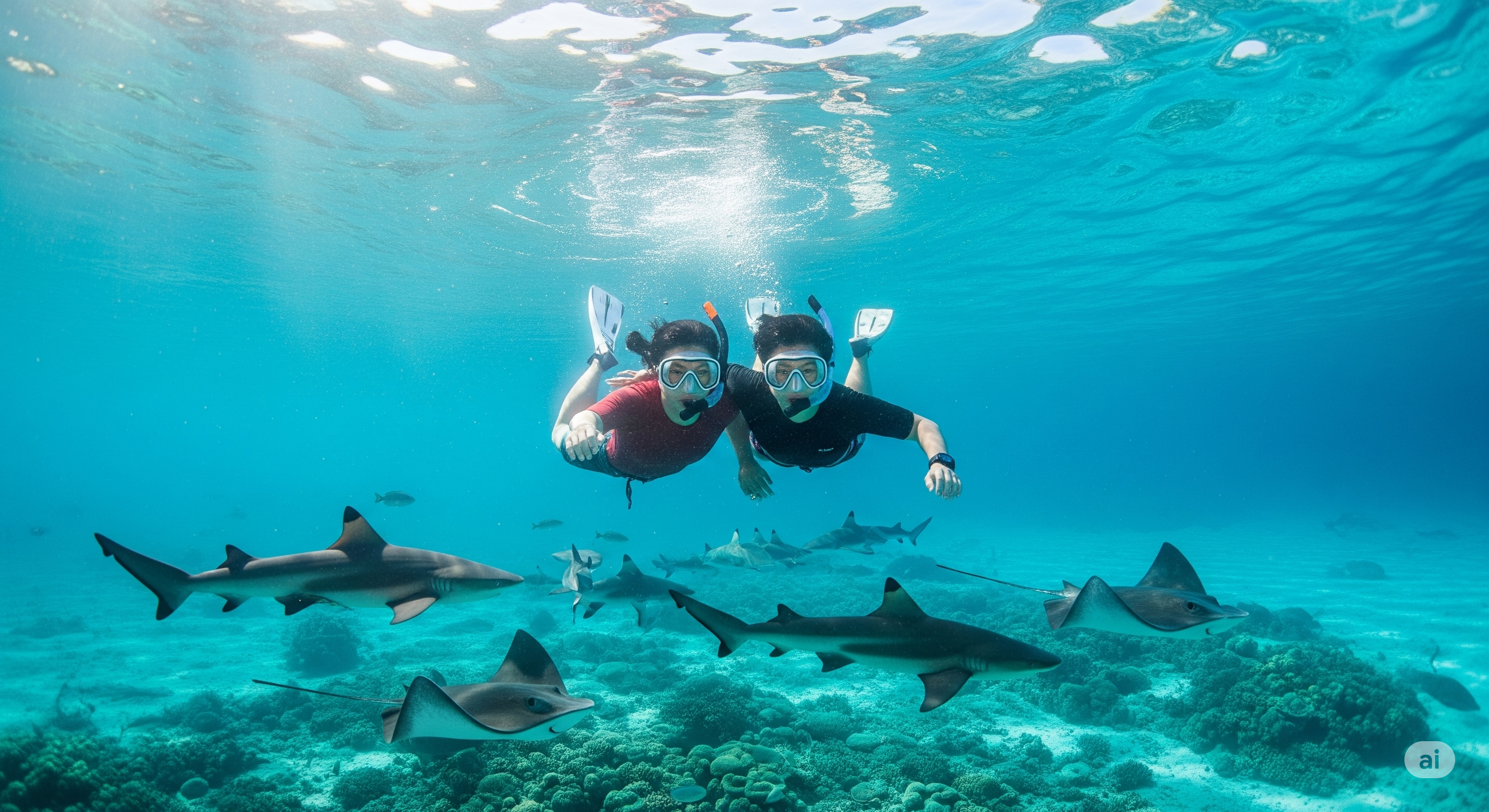 - 라군 투어 & 상어/가오리 스노클링 (가장 인기!): 보라보라에 가면 꼭 해야 할 액티비티입니다. 전문 가이드와 함께 라군 곳곳을 탐험하며, 사람에게 길들여진 상어와 가오리 무리와 함께 스노클링을 즐기는 이색적인 경험을 할 수 있습니다. 얕은 물에서 진행되므로 수영을 잘 못해도 걱정 없습니다.