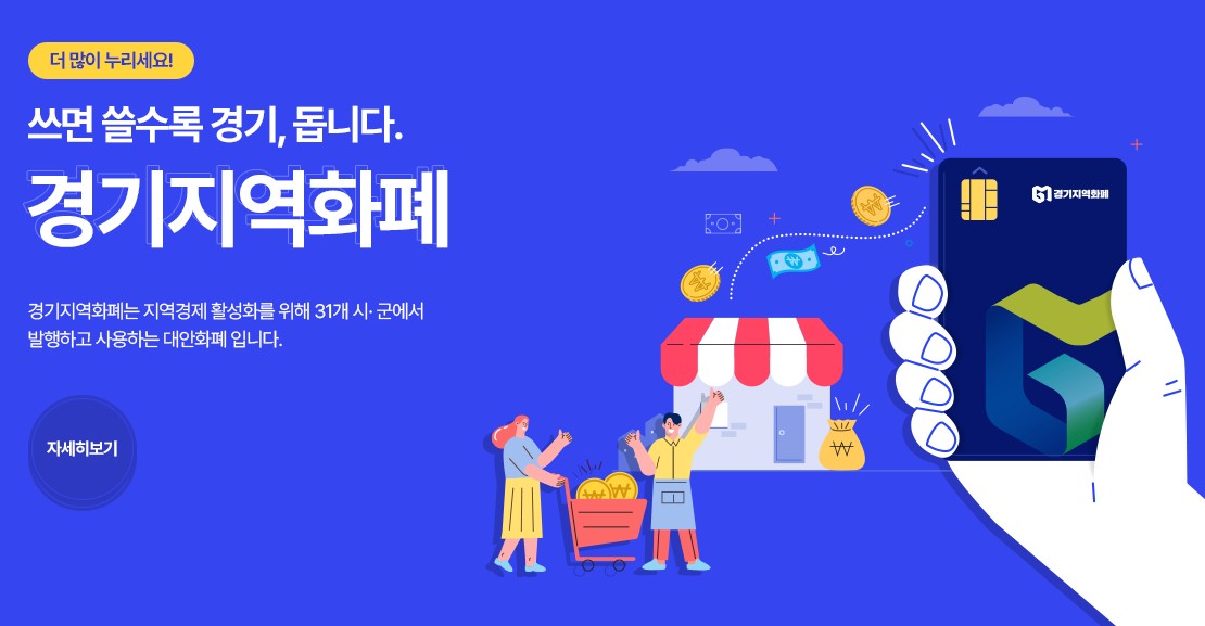 경기지역화폐는 경기도 31개 시·군에서 발행하고 사용하는 화폐로 돈이 대기업이나 다른 지역으로 빠져나가는 것을 막고, 우리 동네 소상공인과 자영업자의 매출을 늘려 지역 경제를 활성화하는 것을 주된 목적으로 합니다.